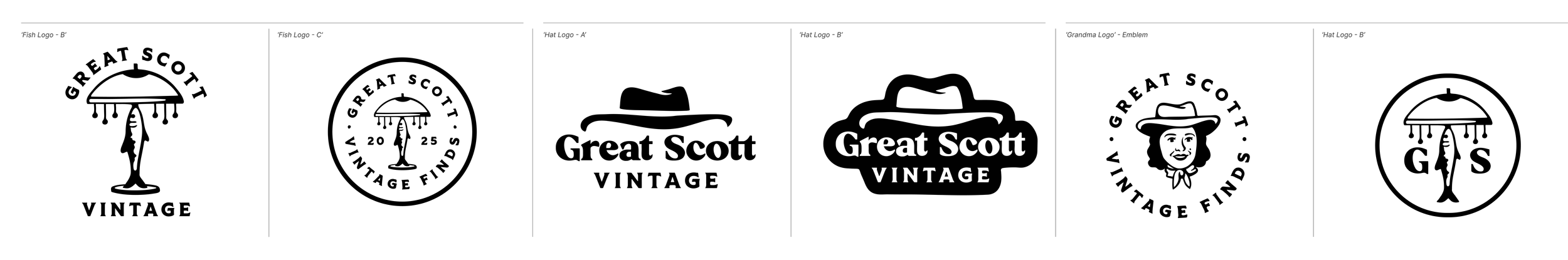 For the first round of logo development for Great Scott Vintage, I led the creation of two distinct visual directions—each grounded in strategic insights drawn from client discussions, moodboarding, and brand positioning.